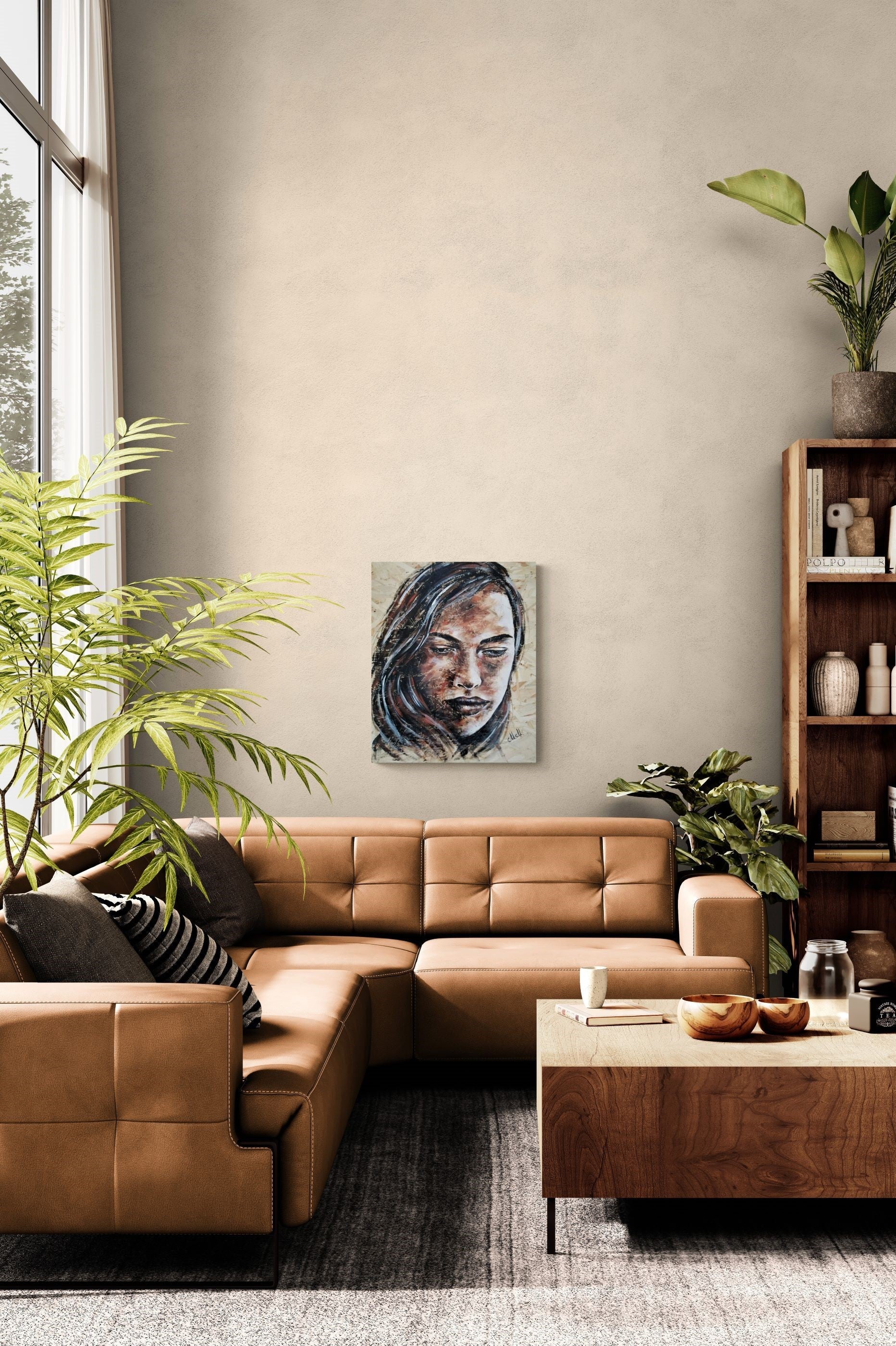Modern acrylic portrait paintings on recycled wood and mixed media art for your unique Home Gallery