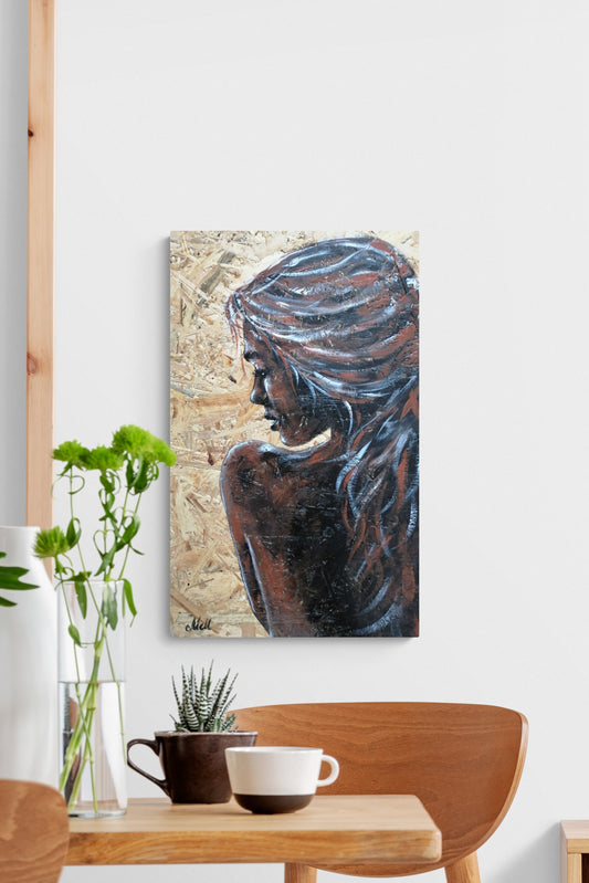 Waiting for you - acrylic portrait painting on wood