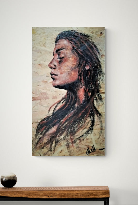 Sensual look - acrylic portrait painting on wood