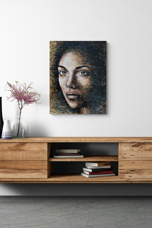 The look - acrylic portrait painting on wood